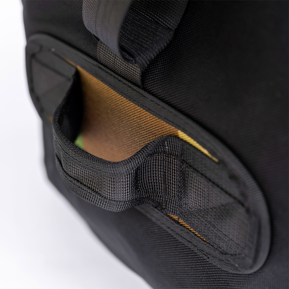 برای جابجایی میتوانید از تسمه هایی که به عنوان دسته تعبیه شده و دور کیف چرخیده استفاده کنید یا از دسته های کناری که در دو طرف کیف وجود دارند.